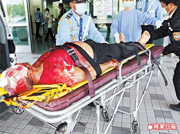 老鄰長李吳萬本被砍得渾身是血,送醫(yī)仍不治。 來源:臺灣《蘋果日報》
