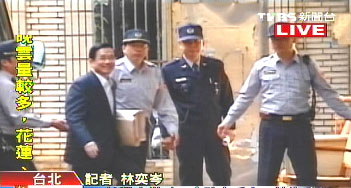 陳水扁進入法院。 來源:臺灣TVBS電視臺