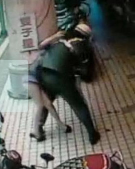 壯碩男警側摔壓制檳榔西施的畫面被路邊監視器拍到。 來源:臺灣《蘋果日報》