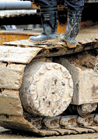 挖掘機漏夜進行搶救,履帶上滿是泥濘,救災人員的雨鞋更是整天泡在泥里。 來源:臺灣《聯合晚報》