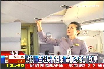 華航發(fā)言人陳鵬宇:“國際民航組織規(guī)定,我們的空服員要到一定身高,才能夠使用到服務(wù)設(shè)施。”