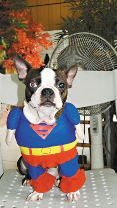 寵物狗“大目仔”愛穿超人裝。圖片來源:聯(lián)合報