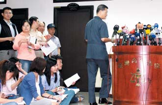 陳水扁等人涉及的公務機要費等案二審宣判后,二審法院發言人陳晴教(右)出面對媒體說明判決結果。圖片來源:臺灣《中國時報》