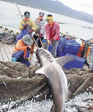 當(dāng)?shù)貪O民傳言,昨天清晨有箱網(wǎng)養(yǎng)殖工作人員,前往離岸500米遠(yuǎn)的沿海箱網(wǎng)進(jìn)行例行察看時,發(fā)現(xiàn)有公牛鯊闖入箱網(wǎng)內(nèi),工作人員以大型魚叉等器具,欲將它拖上船時,公牛鯊竟扯斷魚叉逃脫。據(jù)傳,此公牛鯊至少有2米長、重量恐超200公斤。另外,2個月內(nèi)附近已傳發(fā)現(xiàn)4尾公牛鯊。