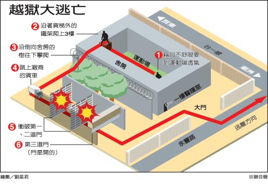 通緝犯越獄示意圖。(圖片來源:臺(tái)灣《聯(lián)合報(bào)》)