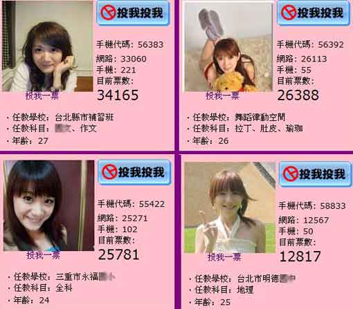 社交網站地圖日記營銷總監廖家欣表示,繼前年成功推出美女老師票選走紅,且今年新聞事件炒熱美女老師話題。所以,今年教師節再推出“超人氣美女老師”票選,只要是各級學校老師、補教、才藝老師都可報名,希望透過網絡票選,讓更多人看到老師嚴厲外表下不為人知的一面。(中國臺灣網 劉海偉)