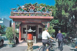 據(jù)當(dāng)?shù)乩锩穹从常坝琅d宮”后方集會所(右圖)經(jīng)常有老人家聚集一起看A片,為香客及附近居民帶來極大的困擾。圖片來源:臺灣《中國時報》
