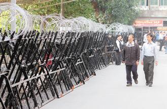 陳水扁2日移往桃園龜山臺北監獄執行;獄方上午架起拒馬戒備,以防止意外發生。圖片來源:臺灣《聯合晚報》