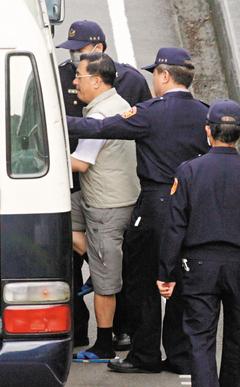陳水扁在臺北看守所的戒護下移監桃園龜山監獄。圖片來源:臺灣《聯合晚報》