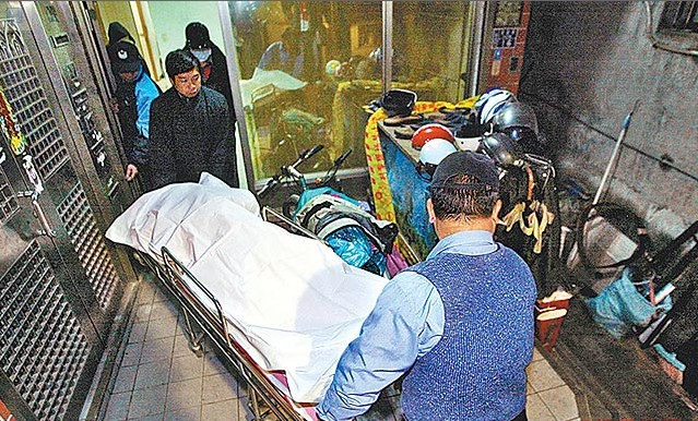 陳姓夫妻在家里燒炭亡,遺體被移往基隆殯儀館。圖片來自網絡