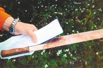 警方花了半小時,在公路邊坡草叢找到兇刀。圖片來源:臺灣《聯合報》