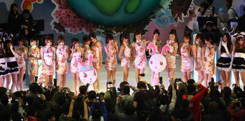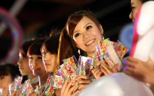2011臺北國際電玩展18日在臺北世貿(mào)一館登場,除了新款各式電玩軟件外,最夯的就是展場Show Girl,只要一出場,攤位馬上擠滿人潮。 圖片來源:“中央社”