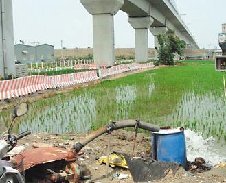 高鐵云林沿線橋下有農(nóng)民抽水灌溉農(nóng)田,疑為造成地層下陷原因。