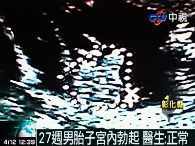 圖為產(chǎn)檢時拍下的男胎兒自慰的照片,醫(yī)生稱男胎兒自慰正常,但能拍下這個畫面實屬罕見。圖片來源:臺灣中視電視臺