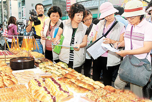 毒果醬流入烘焙業,臺南市衛生局人員4日晚到兩處夜市稽查面包攤。圖片來源:臺灣媒體