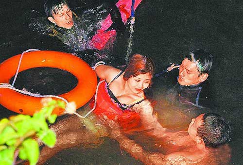 臺灣一薄紗爆乳女落水 消防警察救得好尷尬(圖)