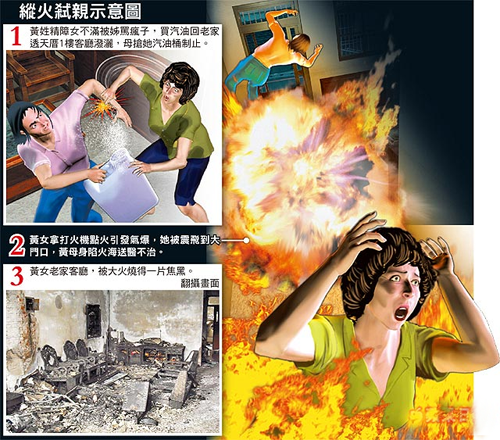 縱火弒親示意圖。圖片來源:臺灣媒體