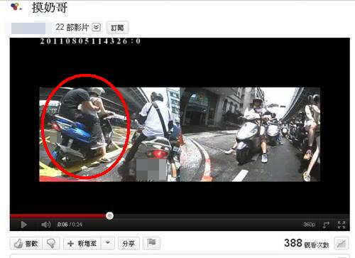 影片中顯示影片拍攝時間是本月5日,一名穿著清涼的女子,騎摩托車載一名男子,男子卻趁等紅燈時,將手伸向女子胸部搓揉,女子感到不適,阻止男子摸奶舉動。一旁的男摩托車主也瞄了一眼,全程全被后方摩托車司機行車紀錄器拍下PO網。(中國臺灣網 馮江)