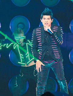 周杰倫高雄演唱會,周杰倫(右)與舞群穿著LED炫閃裝,十分吸睛。(圖片來源:臺灣《聯(lián)合報(bào)》)