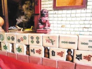 中國臺灣網1月30日消息 據臺灣《聯(lián)合報》報道,臺南市鹽水區(qū)有座“麻將廟”,由瑕疵的5000張麻將牌砌成,供奉財神爺,春節(jié)期間許多游客慕名而來,稱奇之余不忘求財。