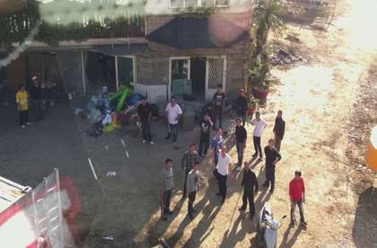 新竹新埔鎮(zhèn)鎮(zhèn)代會王姓主席,不滿拆遷戶私下找承包商拆屋,派多名手持棍棒的手下到場,厲聲要求民眾下樓談話。(圖片來自臺媒)
