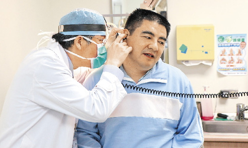 陳光標(biāo)1日在臺灣接受健檢,圖為耳窺檢查。(圖片來源:臺灣《旺報》)
