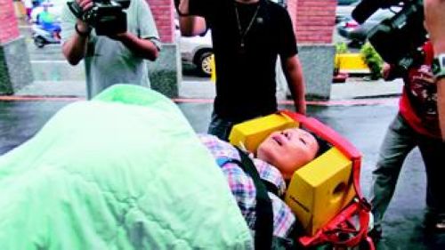 南回自強號列車撞土石堆出軌,李姓婦人腰椎受傷,須住院治療。圖片來源:臺灣《聯合報》