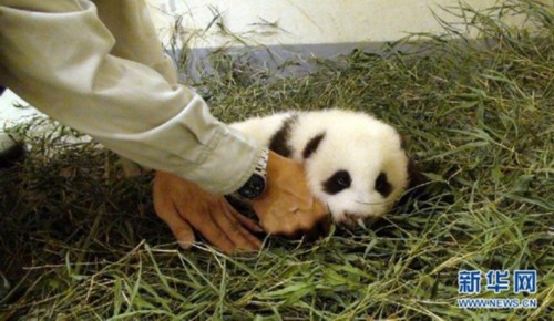 大熊貓保育員幫“圓仔”更換全新“竹葉床”(9月5日攝)。近日,贈臺大熊貓“圓圓”產(chǎn)下的寶寶“圓仔”已滿兩個(gè)月,保育員為“圓仔”更換了全新“竹葉床”,以保證它安穩(wěn)舒適地睡覺。據(jù)介紹,“圓仔”以前睡的“嬰兒床”由媽媽“圓圓”用自己的食物——竹葉鋪成,“圓圓”和“圓仔”“分床睡”。