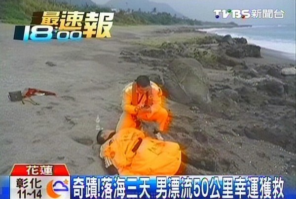 落海的曾連發家住花蓮,目前和女友同住,已經有2個小孩,現在又即將迎接第3位新生兒。他為了貼補家計,3日凌晨到花蓮溪捕鰻苗,沒想到卻不慎在出海口落海,幸好“當時抓到浮木!”但由于東北季風影響,在海上漂流長達60小時,最后被打到岸上時已經“累到沒力”,只能癱軟在沙灘上。