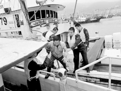 9時(shí)30分許,經(jīng)過一個(gè)多小時(shí)的救援,在兩岸搜救力量的共同努力下,遇險(xiǎn)漁船險(xiǎn)情被成功排除,漁船及船上人員全部平安返航(右圖)。“我們都是一家人,大陸鄉(xiāng)親海上有難,我們義不容辭,都會(huì)過去幫忙。”臺(tái)輪“順利泰”號(hào)船員陳相萬說。