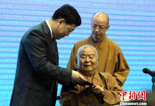 在隨后舉行的受聘儀式上,趙躍宇為星云大師頒發(fā)聘書、佩戴;。趙躍宇說,星云大師以望九之年受聘湖南大學名譽教授,將成為該校學術生活的一件盛事,為湖南大學扎根中國辦好具有中國特色的高水平大學增添;、廣結(jié)善緣。