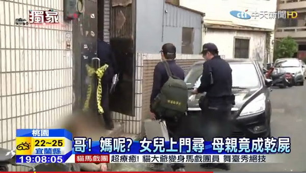 52歲兒子伴76歲老母親干尸1個月,姐弟探視發現人倫悲劇。(圖片翻攝自臺灣中天電視)