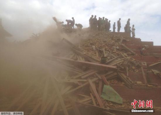 據中國地震臺網正式測定:04月25日14時11分在尼泊爾(北緯28.2度,東經84.7度)發生8.1級地震,震源深度20千米。圖為加德滿都地震救援工作展開。