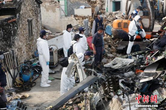 2014年7月24日,臺灣澎湖湖西鄉(xiāng)西溪村空難現(xiàn)場,搜尋清理工作正在進(jìn)行。臺灣復(fù)興航空一家客機(jī)23日傍晚從高雄飛澎湖馬公機(jī)場時,重飛失敗而在當(dāng)?shù)厥拢斐蓹C(jī)上58位乘客和機(jī)組人員目前有48人死10人傷。 中新社發(fā) 黃少華 攝