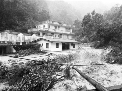 8月8日,新北市三峽多處溪水暴漲,泥石流流進一處民宅。新華社發