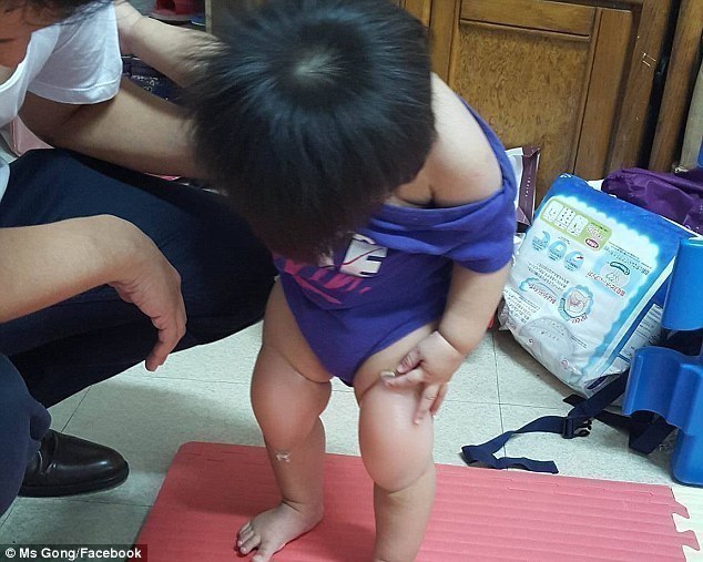據英國《每日郵報》報道,一位臺灣的父親被稱為“天才老爸”,他將女士用的隱形內衣拆下來給蹣跚學步的女兒當護膝,這樣她在學習走路的過程中就不會摔傷了。