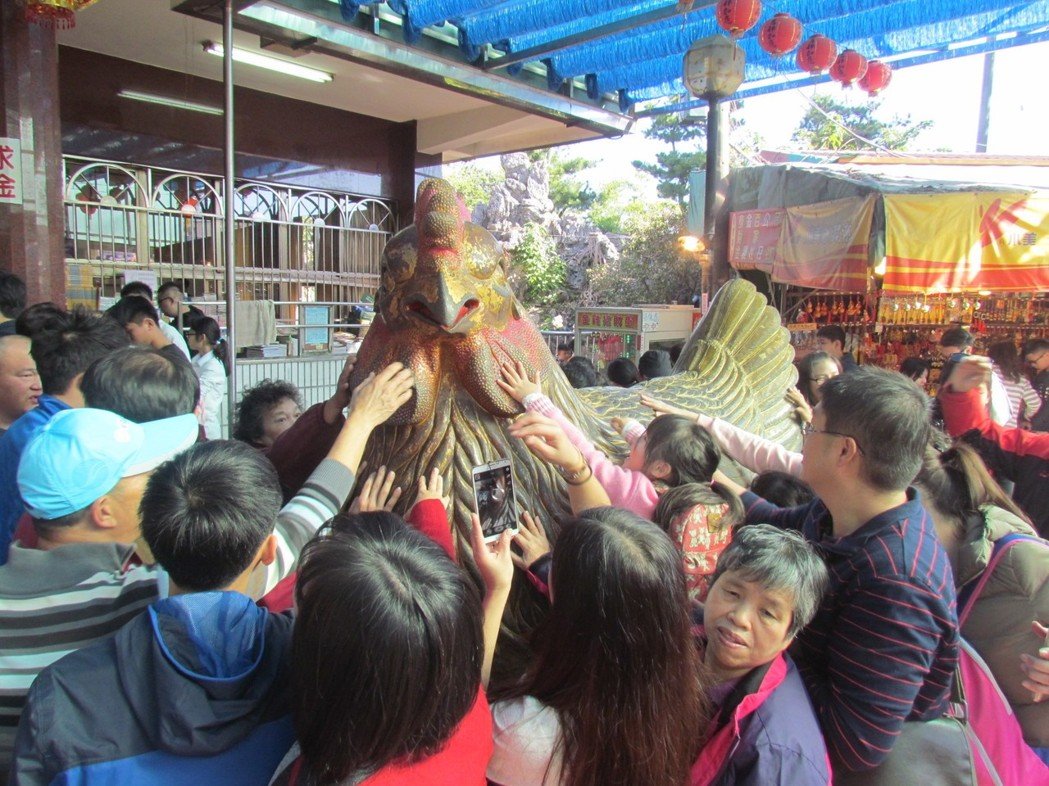金雞是紫南宮的吉祥物,紫南宮借金處前的金雞,擠滿了大批信眾。(圖片來(lái)源:臺(tái)灣《聯(lián)合報(bào)》)