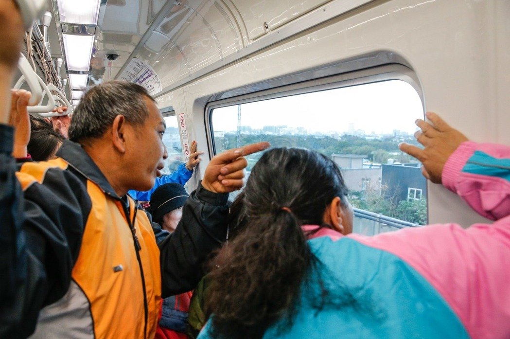 “等了那么多年,終于等到了”,體驗首發的林姓居民今天帶著70多歲媽媽一起來搭機捷,雖然起步有點晃,但路程平穩,速度感覺比臺北捷運慢了一點,整體上非常舒適,迫不及待要搭機捷前往機場。
