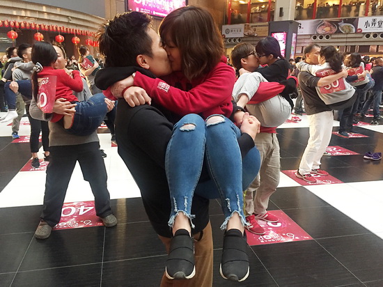 142分鐘 臺灣一對情侶擊敗百人奪情人節接吻比賽冠軍