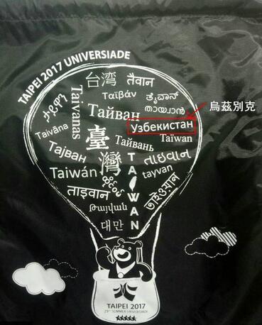 繼宣傳布條背景出現上海場景后,世大運文宣又出包!有世大運義工爆料,在稱參加完世大運義工培訓后,得到一個印有吉祥物熊贊與用各國語言寫“臺灣”的紀念背包。但沒想到,上頭用烏茲別克語寫的文字“Узбекстан”,其實并非臺灣而是“烏茲別克斯坦”。爆料者表示,這是個很大而且又明顯的疏忽,真的“很瞎”。