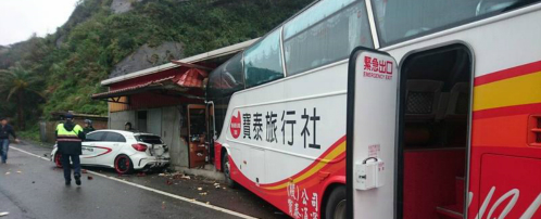臺陸客團游覽車沖入民宅,駕駛陳姓男子失去生命跡象。(圖片來源:臺灣“中央社”)