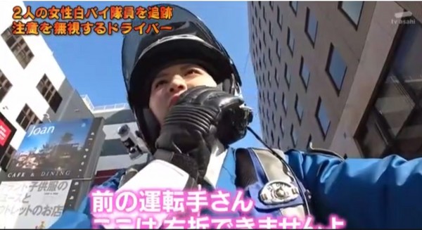 據(jù)臺灣“東森新聞網(wǎng)”4月5日報道,日本朝日電視臺的警察執(zhí)勤紀(jì)錄節(jié)目“列島警察搜查網(wǎng)THE追跡”,最近播出春季事件,影片中,熊本市女警察騎著800C重機(jī),在路上巡邏,忽然發(fā)現(xiàn)有車在禁止右轉(zhuǎn)路口等右轉(zhuǎn),女警察立即廣播告訴駕駛員“這里不能右轉(zhuǎn)”,不過車上駕駛員并不為所動,此時警笛響起,女警要求停車。