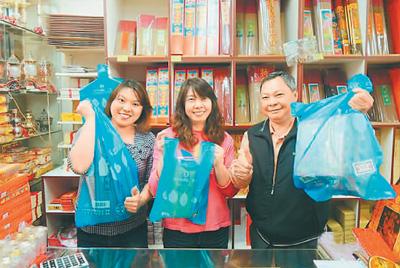 臺北市環保局推出“環保二次袋”,可做垃圾袋、購物袋兩用。(臺北市環保局提供)