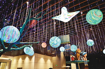 熟悉幾米作品的人多知道,《地下鐵》講的是一個失明的小女孩,在15歲生日那天,獨自一人在城市里探險,她戰(zhàn)戰(zhàn)兢兢地搭乘地下鐵,從一個陌生的小站出發(fā),前往另一個陌生的小站。在南港車站,6幅大型的壁畫,活潑奔放的色彩,為行人再現(xiàn)了《地下鐵》中的故事情境。