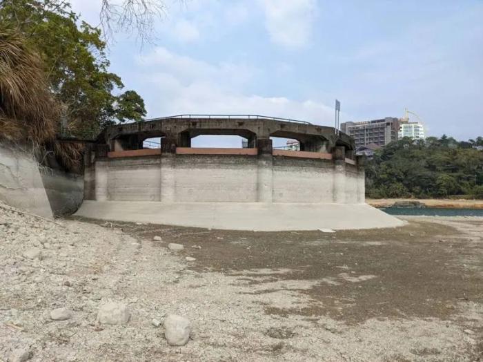 如今,這片位于臺(tái)灣中部的美麗湖泊,卻正遭遇干旱危機(jī)。久旱不雨加之配合彰化、云林春季的農(nóng)業(yè)灌溉用水,導(dǎo)致日月潭水位持續(xù)下降,蓄水率僅為60.5%。潭區(qū)中用以觀察蓄水量和水情的“九蛙疊像”已全部浮出水面,令到訪游客驚呼,“九只都出現(xiàn)了,好夸張喔!”;“神秘黑洞”溢流井建筑本體也已露出,成為“旱象奇觀”。