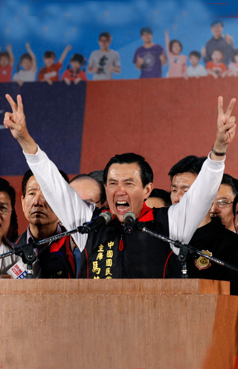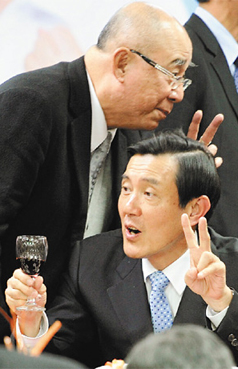 2012年臺灣地區領導人選舉14日舉行投開票。晚間,在馬英九、吳敦義競選總部舉行記者會,馬英九現身...