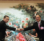 | 6月20日下午,海協(xié)會(huì)常務(wù)副會(huì)長(zhǎng)鄭立中與臺(tái)灣海基會(huì)副董事長(zhǎng)高孔廉,在上海進(jìn)行兩會(huì)第九次會(huì)談?lì)A(yù)備性磋商,就海峽兩岸服務(wù)貿(mào)易協(xié)議簽署達(dá)成一致,為明天正式會(huì)談做最后準(zhǔn)備。