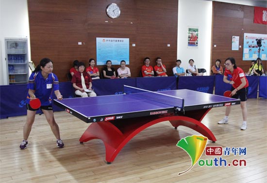 中國臺灣網(wǎng)和新浪網(wǎng)在第二場女單比賽中。其中身著藍(lán)色衣服的是新浪網(wǎng)隊員,身著紅色衣服的為中國臺灣網(wǎng)隊員。中國青年網(wǎng)記者 李鐵攝