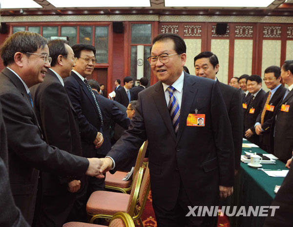 3月5日,中共中央政治局常委李長春來到他所在的十一屆全國人大三次會議四川代表團,同代表們一起審議政府工作報告。新華社記者饒愛民攝