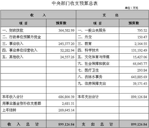 水利部2010年收支預(yù)算總表